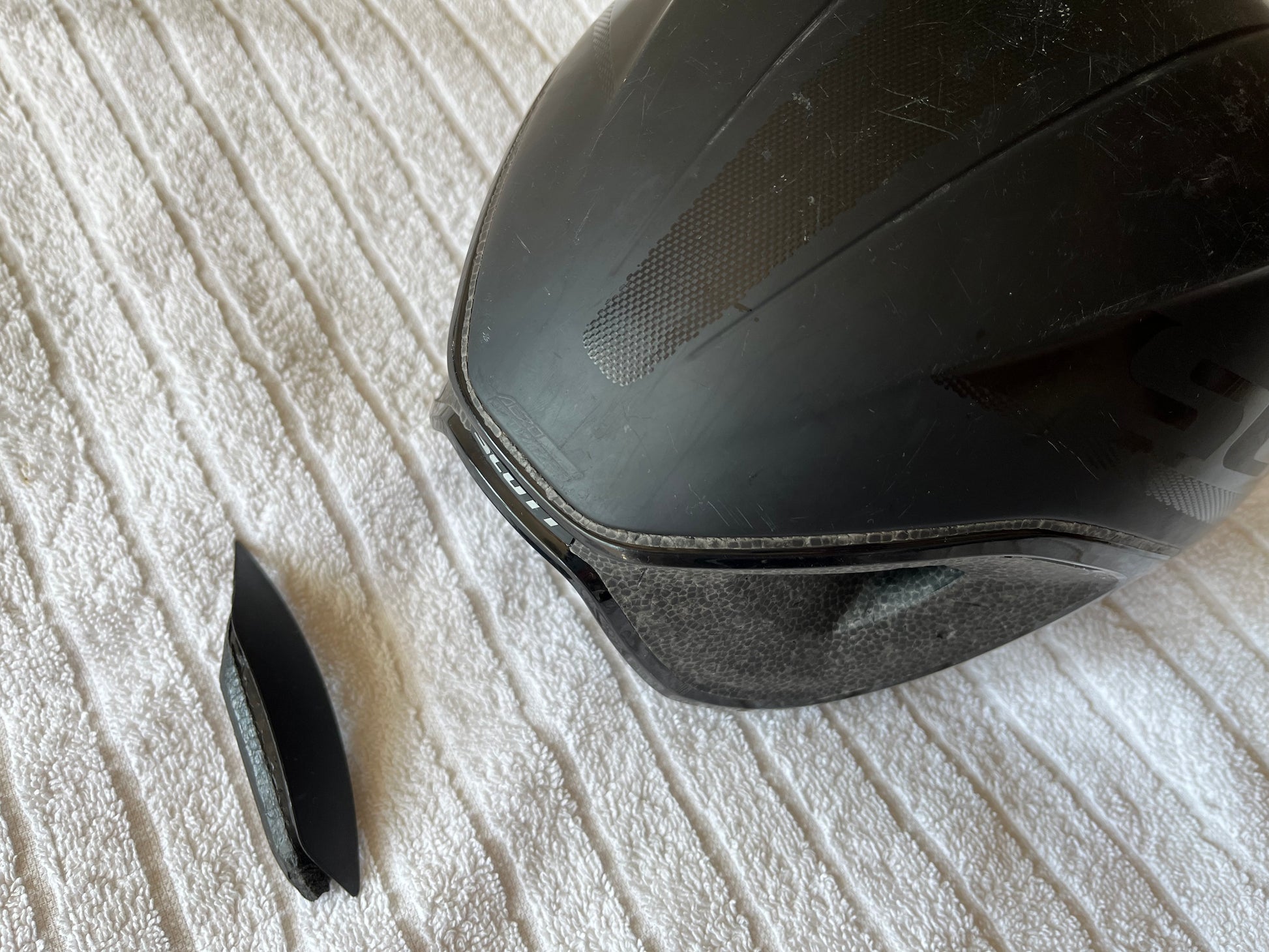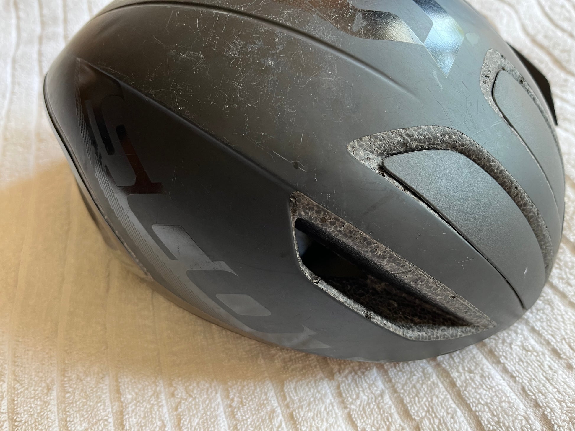 - note that the one vent insert is missing and that there are light nicks and scratches. Helmet is not damaged